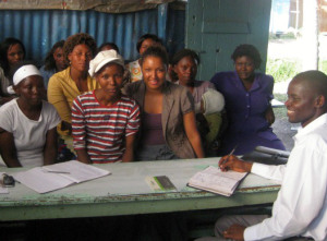 Bankers without Borders volunteer Yolanda Walker (center) attends a borrower’s group meeting in Kenya.